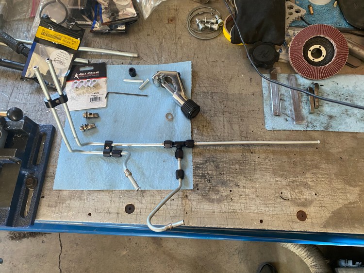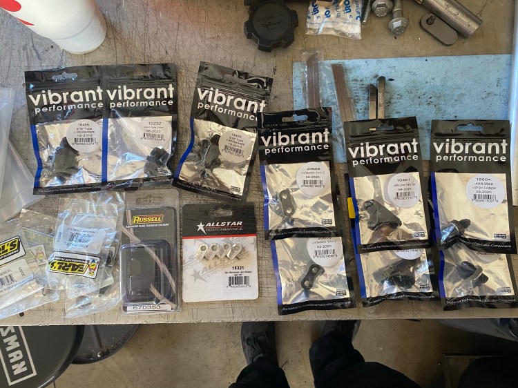 I started with a gang of fittings and line. Everything was around $100 to get this little project done, but worth every dollar in saving the engine. It took awhile to get everything to fit nicely. A lot of test fitting and readjusting lines and clamps, but in the end I am very happy with the results. I’ve really been liking the Vibrant fittings lately, they have a good fit and the finish doesn’t mar easily.