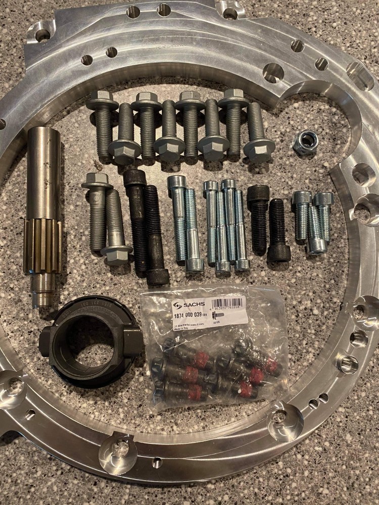 Next up was finding an adapter kit. I had recently found Adamat Performance in Poland and sent them a message about what I was working on. They had told me that they had just finished designing the kit for the 1.6 and it would be available in just a couple weeks (they already offered a 1.8 kit). I placed an order for the kit and it showed up in a couple weeks. The kit consists of the adapter plate, custom flywheel, twin disk clutch, and all associated hardware.