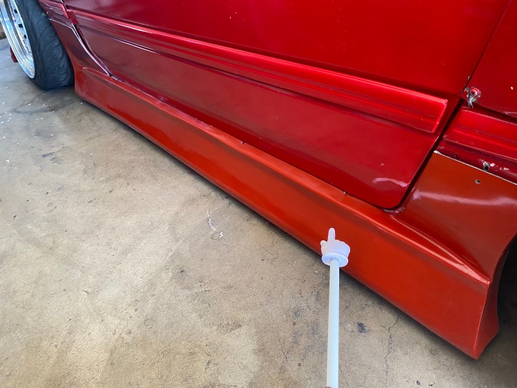 I was lucky enough to find some used skirts locally a couple days before the event. They weren’t in bad shape, but they were purple. I picked out my closest aerosol can and got them red enough. The fit isn’t the best, but they look much better than my old skirts. I got the car all washed up Thursday night so we could load up first thing Friday morning.