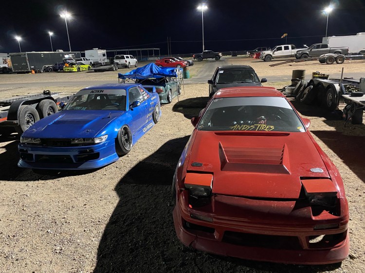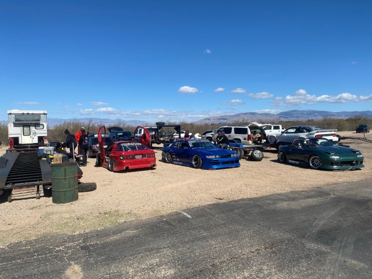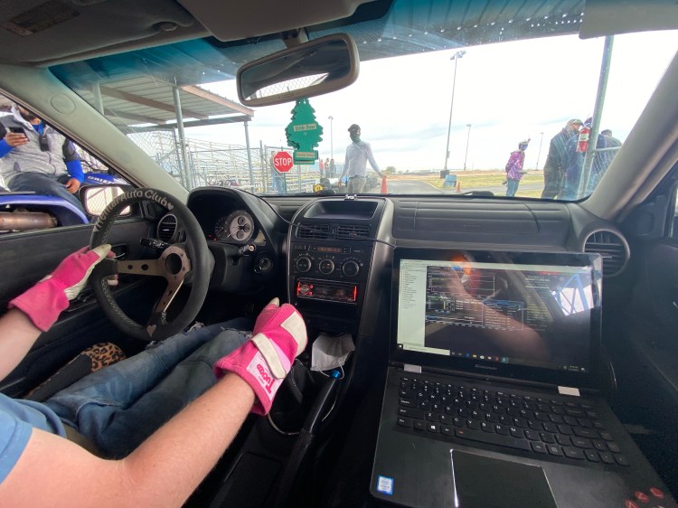 The first thing Saturday was to go out with Jeff and do some datalogging. It was his first time on track with the Sportcross and with the new 1.5JZ. He had done a couple hours of remote tuning with Panic and then several hours of street tuning, but we wanted to make sure everything looked good on track in Tucson. I got to be in charge of the laptop, which is really weird to hold while drifting.